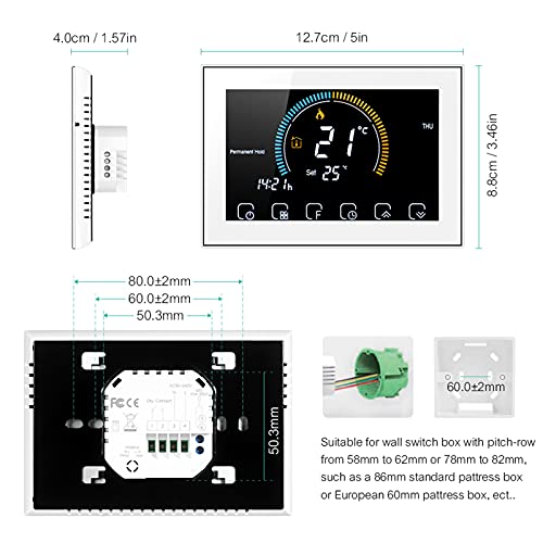 Termostato LCD, Termostato di memoria dati di spegnimento Sei periodi Schermo LCD retroilluminato in colore programmabile Funzione di memoria per la casa per strumenti di(BHT-8000 GC-bianco)