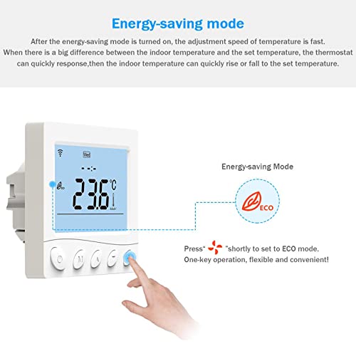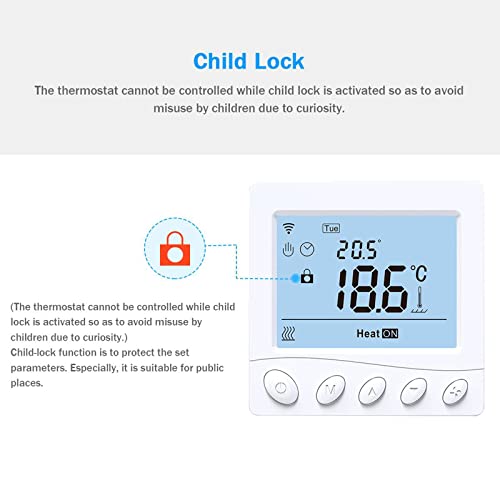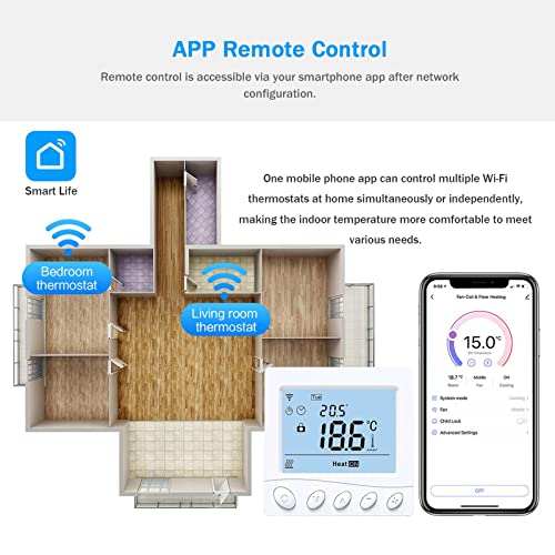 Controllo app da ovunque: funziona con l'app Smart Life/Tuya Smart per la regolazione di piani di riscaldamento e temperatura. Compatibile con Amazon Alexa e Google Home per controllo vocale (dispositivo on/off/impostazione della temperatura)