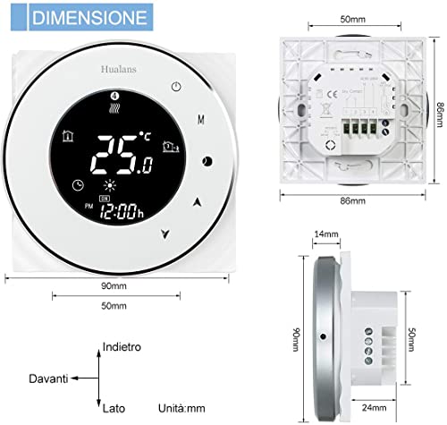 Due Modalià: Il termostato wifi per il riscaldamento WiFi supporta la programma o manuale. È possibile utilizzare il controllo manuale o programma, facilmente regolare la temperatura della vostra casa.