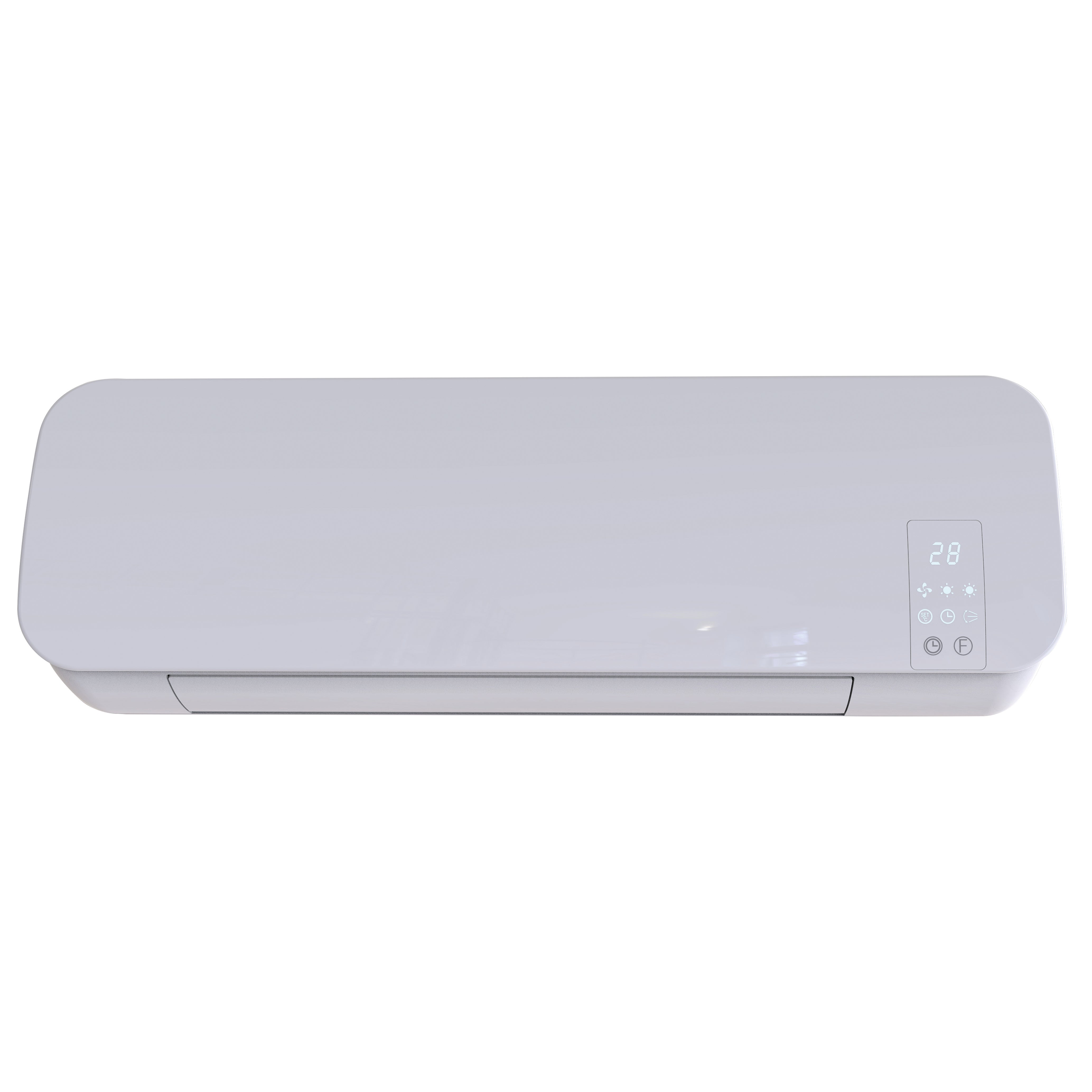 Termoventilatore murale Equation con telecomando incluso. Potenza massima 2000W. Con termostato, timer, telecomando e display LCD. Ideale per riscaldare un bagno, un soggiorno, una camera da letto o un ufficio fino a 20 m². Montaggio a parete, appositamente progettato per risparmiare spazio.. Adatto per tre gradi di utilizzo grazie alle 3 impostazioni di potenza: 1000 W per ambienti fino a 10 m², 2000 W per ambienti fino a 20 m² o solo ventilazione.. Con la programmazione settimanale puoi avere la giusta temperatura in bagno al mattino per il primo utilizzo. Potenzia il riscaldamento nella stanza utilizzando la modalità continua che permette di riscaldare fino a 12 ore senza impostare la temperatura.. Il termostato permette di regolare la temperatura massima desiderata. Grazie all'oscillazione a 64 gradi diffusonde meglio il calore.