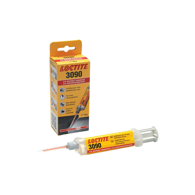 • LOCTITE 3090 ADESIVO ISTANTANEO • RAPIDA POLIMERIZZAZIONE • OTTIME CARATTERISTICHE DI INCOLLAGGIO • NON COLA • ADATTO ANCHE PER L'INCOLLAGGIO DI MATERIALI POROSI • SIRINGA DA 11 gr • CODICE: 1378679 LOCTITE 3090 è un adesivo bicomponente, riempitivo, a polimerizzazione rapida, con ottime caratteristiche di incollaggio che lo rendono idoneo per un'ampia gamma di materiali, ivi compresi plastica, gomma e metallo. È concepito per il montaggio di parti con cavità di giunzione diverse o non definite, fino a 5 mm, oppure per applicazioni nelle quali sia indispensabile una polimerizzazione completa degli eccessi di adesivo. Grazie alla formulazione in gel, il prodotto non cola, e permette applicazioni verticali o sottosopra. Adatto anche per l'incollaggio di materiali porosi come legno, carta, pelle e tessuto.
