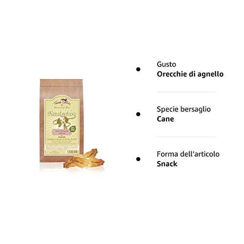 IL PRODOTTO: i Kautschos orecchie di agnello essiccate consentono al cane di godersi la masticazione, di gustare un piccolo snack/premio fuoripasto o di svolgere una gustosa attività.