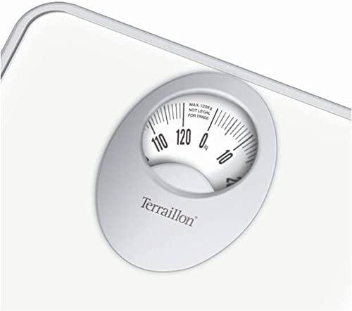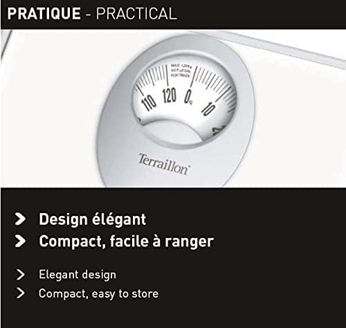 TERRAILLON - Bilancia da bagno meccanica - Quadrante rotante grande, piattaforma in metallo, 120 kg max - Modello 'T61' Bianco