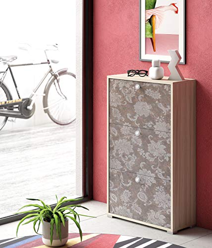 DESIGN MODERNO: elegante moderna e funzionale, adatta ad ogni ambiente, 3 ante doppia profondità a ribalta con meccanismo interno in materiale plastico a doppio scomparto, contiene fino a 6 paia per ciascuna anta, piedini in materiale plastico.