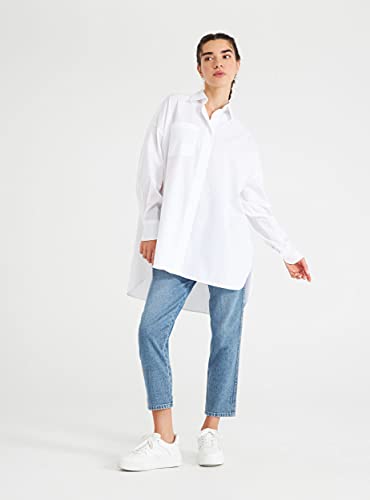 TERRANOVA - Camicia da Donna in Tessuto Popeline a Tinta Unita. Modello Classico con vestibilità Over Manica Lunga con Polsino Colletto Classico Chiusura Frontale con Bottoni e Taschino sul Petto.
