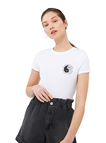 TERRANOVA - Maglietta da Donna in Morbido Jersey di Cotone con Stampa tao Laterale Decorata con Strass. Modello Girocollo Leggermente Sfiancato a Maniche Corte con Risvolto Cucito. vestibilità Slim.