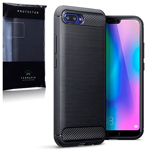 TERRAPIN Custodia Huawei Honor 10, TPU Gel Custodia per Huawei Honor 10 Cover, Colore: Fibra di Carbonio & Filiforme Schema Nero