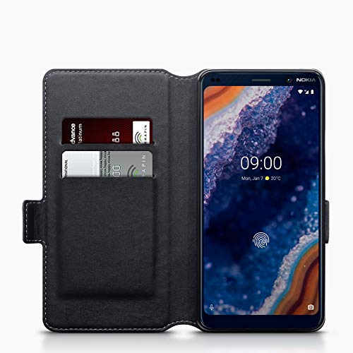 TERRAPIN Custodia Nokia 9 PureView, Vera Pelle della Cassa del Raccoglitore con Funzione di Appoggio Posteriore per Nokia 9 PureView Cover Pelle, Colore: Nero