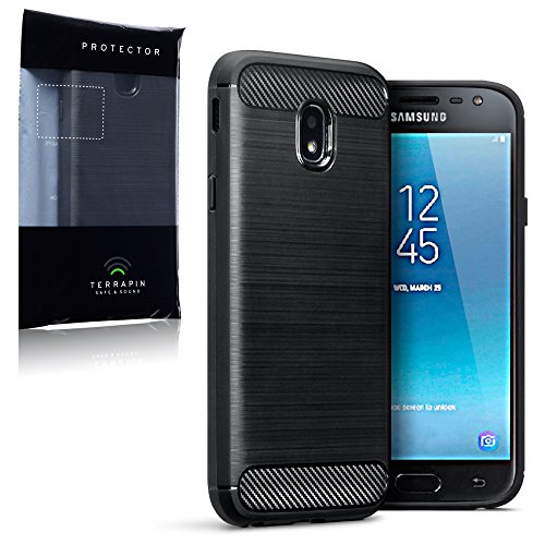 TERRAPIN Galaxy J3 2017 Custodia, TPU Gel Custodia per Samsung Galaxy J3 2017 (Version J330F) Cover, Colore: Fibra Di Carbonio & Filiforme Schema Nero