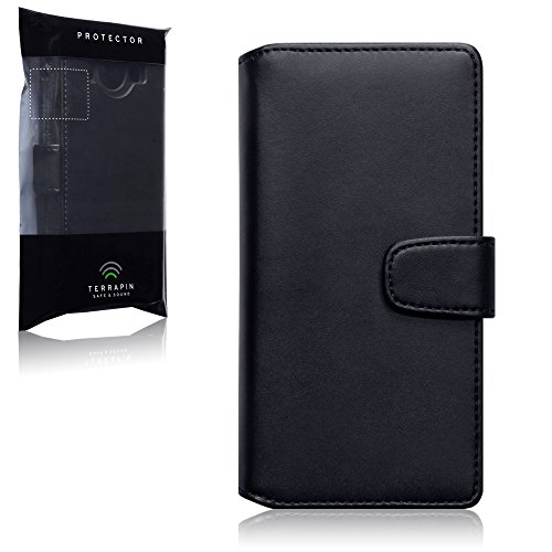 TERRAPIN Microsoft Lumia 950-Custodia Custodia in pelle a portafoglio con scomparti per carte di credito e banconote per Microsoft Lumia 950, Pelle, autentica pelle - nero, Microsoft Lumia 950