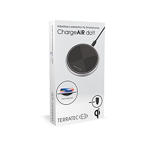 TerraTec ChargeAIR dot - Caricatore wireless da 10 W, compatibile con 11/11 Pro/11 Pro Max/XS Max/XR/XS/X/8/8+, Galaxy Note 10/S10e/S10/S9, AirPods - Alimentatore incluso