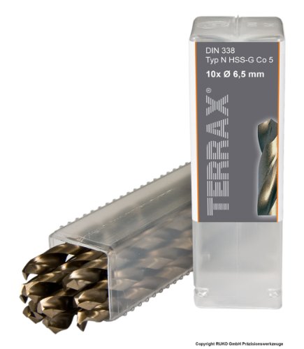 Ruko Terrax HSS-CO5 - Punte elicoidali da 6,5 mm in confezione di plastica da 10