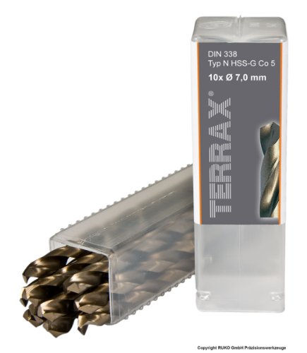 Ruko Terrax HSS-CO5 - Punte elicoidali da 7 mm in confezione di plastica da 10