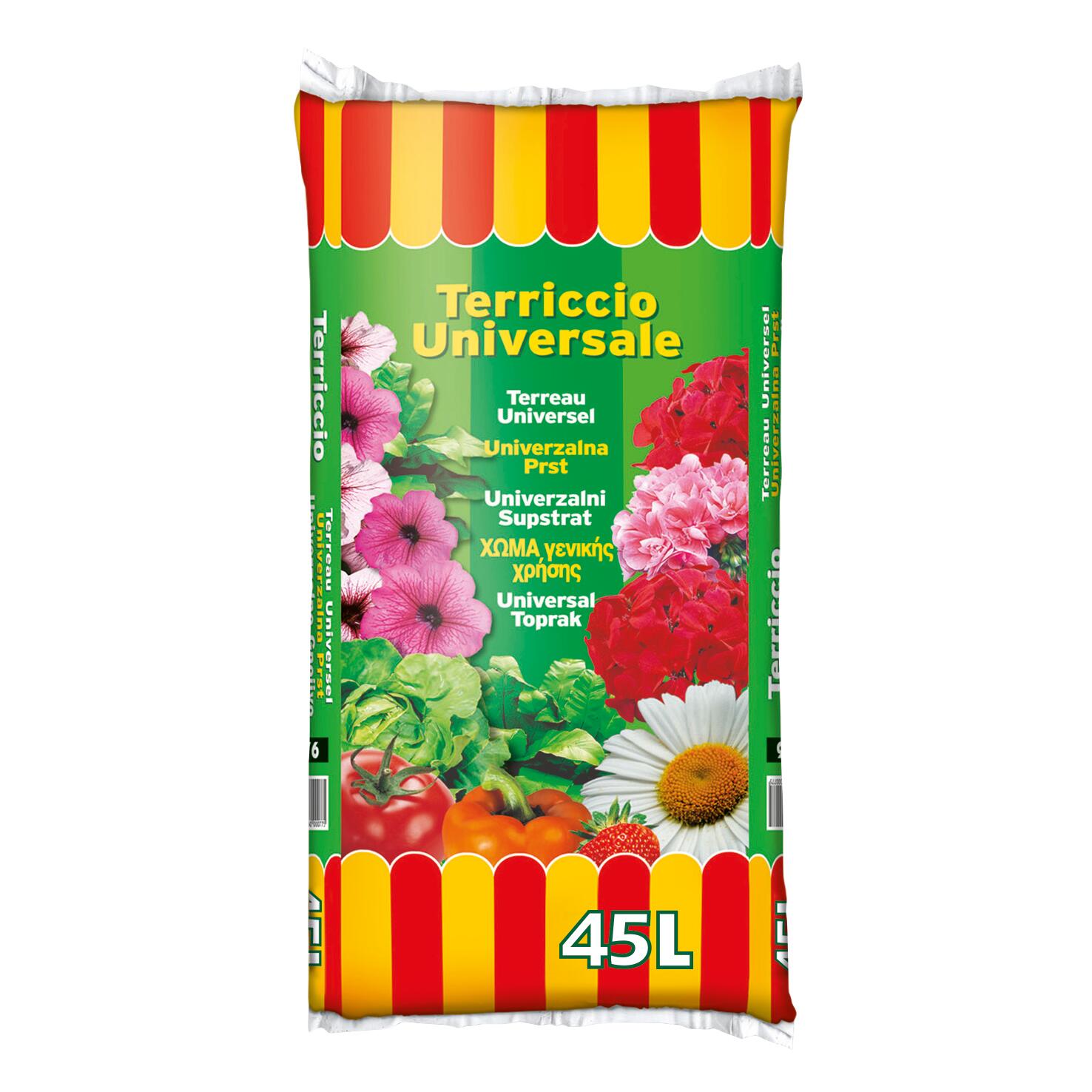 Miscela di torbe, inerti e compost verde, ricco di sostanza organica, aiuta la radicazione e stimola la crescita. Substrato universale per il giardinaggio, ideale anche per l'orto e per tutti i tipi di fiorito.. Ideale per chi necessità di un substrato per ogni uso domestico. Ideale anche come ammendante del terreno per un'importante aggiunta di elementi nutritivi. Materie prime selezionate per mantenere una struttura del substrato stabile nel tempo. Substrato pronto all'uso e di facile gestione
