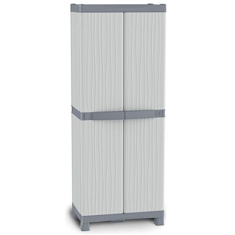 ARMADIO TUTTOPIANI ALTO SERIE WAVE 2700/UW TERRY Caratteristiche: armadio a 2 ante con 4 ripiani regolabili in altezza. Incluse 2 vaschette posizionate nelle ante Pensato per: risolvi i problemi di organizzazione dello spazio. Ottimo per la sistemazione del garage, del giardino, della zona piscina, balconi, terrazzi, lavanderie, sottoscale ripostigli Modulabile: gli armadi possono essere interconnessi tra di loro per attrezzare in modo ottimale le pareti Prodotto Ecofriendly: questo prodotto è realizzato per il 96% con plastica riciclata mm.700x438x1818h. ARMADIO TUTTOPIANI ALTO SERIE WAVE 2700/UW TERRY in materiale termoplastico resistente alla pioggia, colore grigio chiaro, maniglie grigio scuro con chiusura brevettata LOCK SYSTEM, a due ante, dotazione 4 ripiani interni regolabili e 2 vaschette