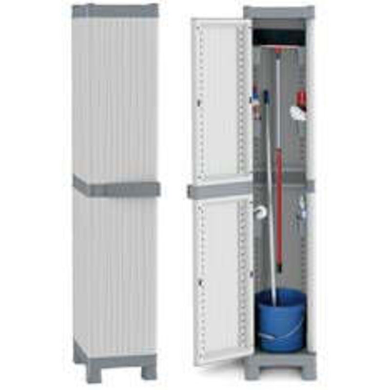 ARMADIO PORTASCOPE ALTO SERIE WAVE 2350/UW - mm.350x438x1818h. in materiale termoplastico resistente alla pioggia, colore grigio chiaro, maniglia grigio scuro, ad un'anta, con 6 vaschette interne regolabili