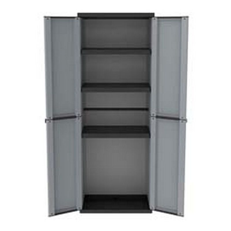 In materiale termoplastico, colore grigio, a due ante con 4 ripiani