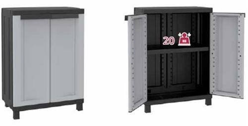 Caratteristiche: armadietto multifunzionale in plastica a due ante. Spazio interno caratterizzato da 1 ripiano orizzontale regolabile in altezza