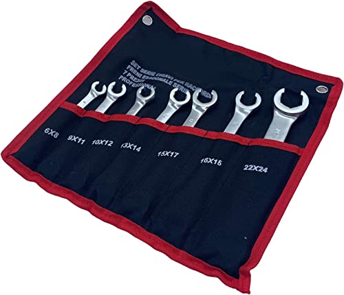 Terryshop74 Set di 7 Chiavi Esagonali con Testa Aperta spaccata per Raccordi Freni Tubi Idraulici con raccoglitore 6x8-9x11-10x12-13x14-15x17-16x18-22x24.