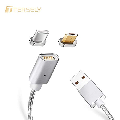 Tersely Cavo Magnetico di Ricarica di Dati Micro USB C Tipo C 2 in 1 Ricarica Dati di sincronizzazione 2 Adattatori per Android Samsung in Nylon Intrecciato