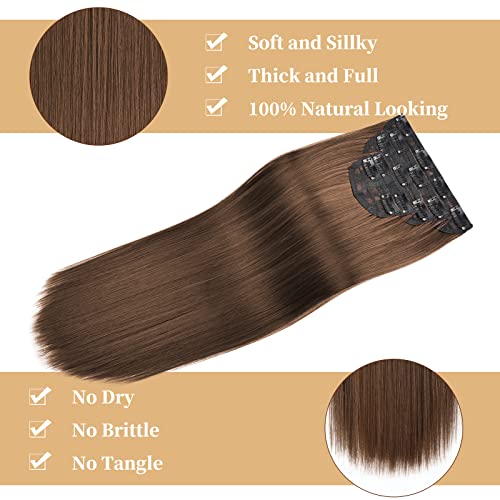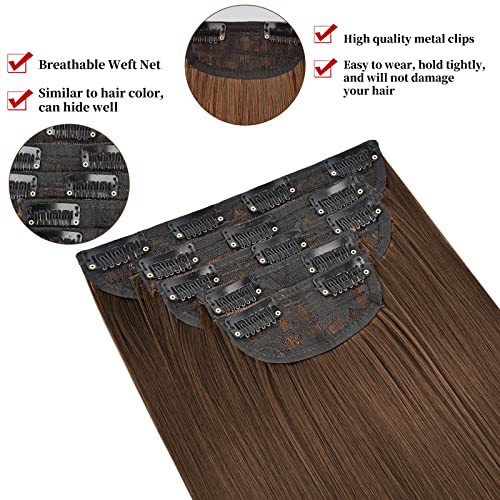 Teruntrue Clip lunga e dritta nelle estensioni dei capelli spessi 0 pollici 5 pezzi 14 clip clip a testa intera su estensioni dei capelli sintetici posticci per donne (2/33 marrone scuro misto scuro)