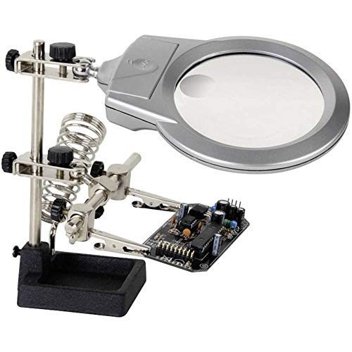 2 luci a LED, supporto per saldatura e lente d'ingrandimento