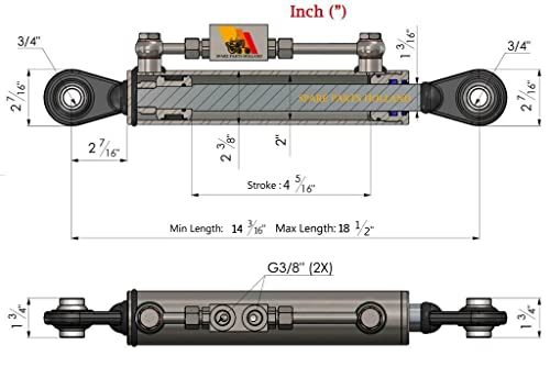 Terzo punto idraulico cat 1-1 con blocco 360-470 mm con 2 tubi