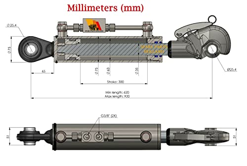 Terzo punto idraulico per trattore CAT2 + 2 ganci gancio 300 mm Corsa blocco di bloccaggio con completo di tubi e nippli