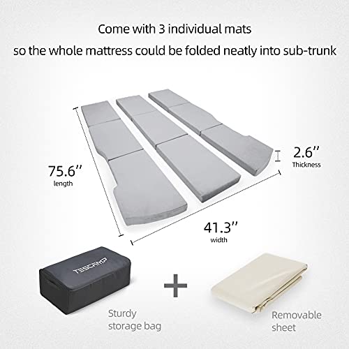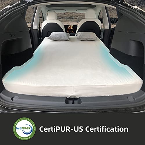 TESCAMP Materasso da campeggio CertiPUR Materasso per auto in memory foam, borsa portaoggetti e lenzuolo in dotazione, per Tesla Model Y, portatile, pieghevole, salvaspazio, in auto dormire, misura