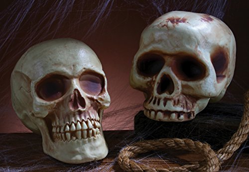Teschio in plastica dimensione naturale 19x14cm. Fa parte di un assortimento di SOLO 2 modelli diversi: bianco, ambrato e senza mandibola invieremo uno scelto a caso tra i due modelli secondo disponibilità. Se ne desiderate uno in particolare vi raccomandiamo di chiedere PRIMA DI ORDINARE se il modello che vi interessa e' disponibile.