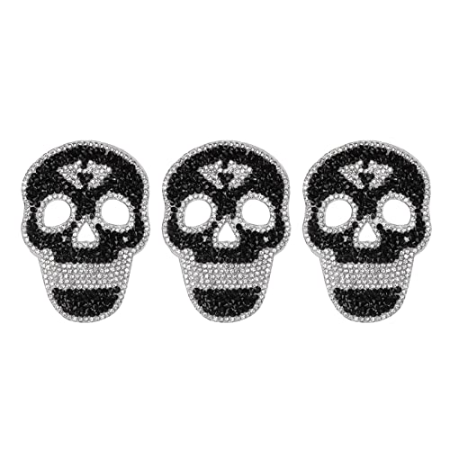 Teschio Nero Che Rende Lucide e Facili da Stirare Le Toppe Applique,3 Pezzi di Toppe di Ferro, Materiale Strass Cucito Toppa Fresca, per Giacche Fai da Te Cappello Zaini Jeans Vestiti riparazion