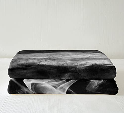 Teschio Sherpa coperta per Halloween, stile gotico, nebbia fumo, con teschio e scheletro, coperta in flanella grigia per ragazzi, uomini, camere da letto decorative, 130 x 150 cm