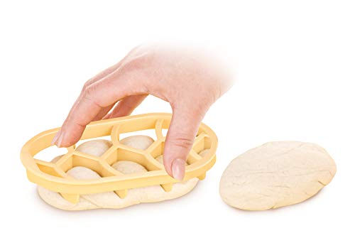Premere a fondo lo stampo sulle pagnottelle (circa 2 mm sopra il piano di lavoro) e cuocere in forno