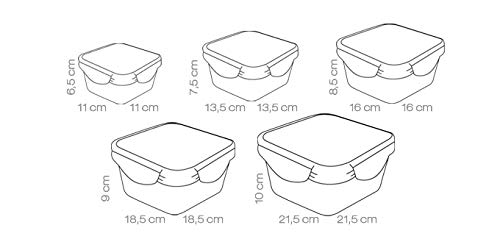 Tescoma 892044 Freshbox Contenitori Quadrati, Plastica, Transparent, 11 x 11 cm, 0.4 l/13.5 x 13.5 cm, 0.7 l/16 x 16 cm, 1.2 l/18.5 x 18.5 cm, 2 l/21.5 x 21.5 cm, 3 l, 5 Pezzi