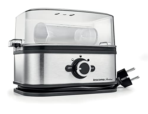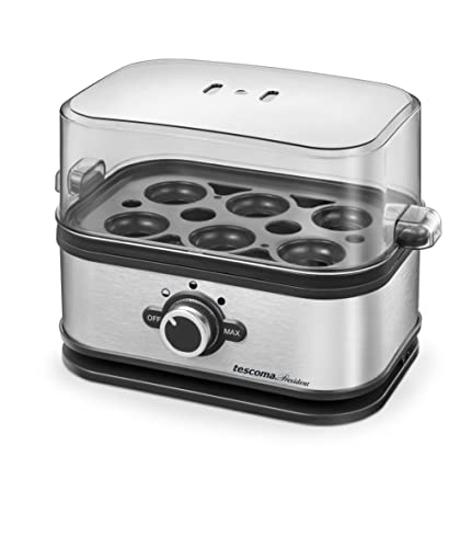 Tescoma 909100 Cuociuova elettrico per 6 uova, 3 programmi di cottura, acciaio inossidabile, linea President