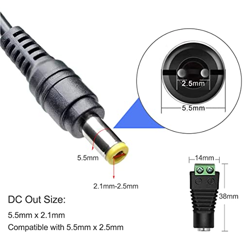 Uscita: DC 24V 2A (48W), interfaccia Specifica: 5,5 mm * 2,1 mm, compatibile con 5,5 mm x 2,5 mm, lunghezza del cavo CA / cavo di uscita: 1,1m