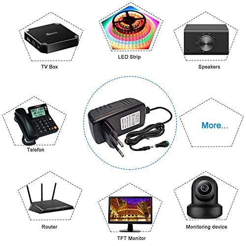 Tesfish 24V 2A Alimentatore Trasformatore 48W Adattatore di alimentazione 5,5 x 2,1/2,5 mm per CCTV, Telecamera, Router, Striscia LED 5050 2835