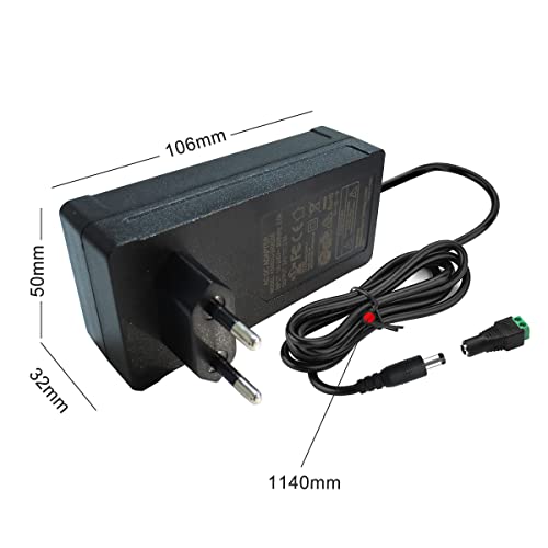Uscita: DC 24V 2,5 A, Specifiche interfaccia: 5,5 mm * 2,1 mm, compatibile con 5,5 mm x 2,5 mm, Cavo di alimentazione/lunghezza cavo di uscita: 1,1 m.