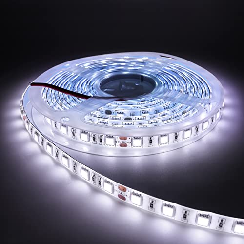 Tesfish Striscia LED 24V, Bianco 6000-6500K Strisce LED 5M 5050 IP65 Nastri LED Impermeabile 300 LEDs Striscia Luci Led per Camera da letto, Decorazione Cucina