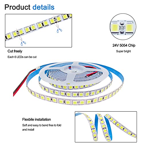 Tesfish Striscia LED, 24V Bianco 6000K Strisce LED 5M 5054 IP20 120 LEDs/M, Totale 600 LEDs Nastri LED Super Luminosa Luci Striscia LED per Camera da letto, Scaffali, decorazione Cucina