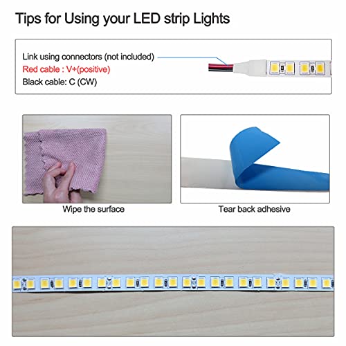 Facile da installare: Striscia LED può essere tagliata tra ogni 6 leds, viene fornita con nastro biadesivo, facile da usare, pulire prima la superficie, quindi montarla su qualsiasi superficie asciutta e piana.