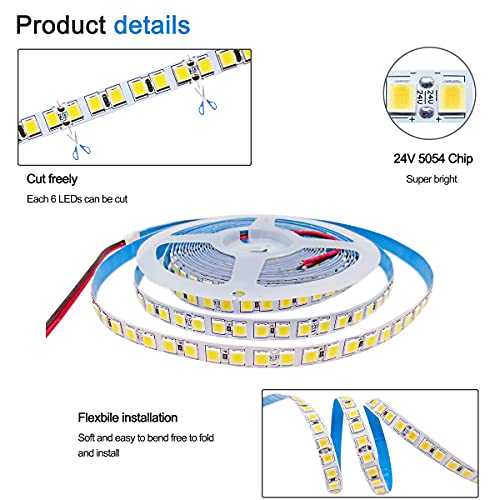 Tesfish Striscia LED, 24V Bianco Caldo 3000K Strisce LED 5M 5054 IP20 120 LEDs/M, Totale 600 LEDs Nastri LED Super Luminosa Luci Striscia LED per Camera da letto, Scaffali, decorazione Cucina