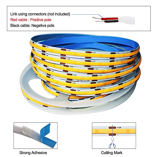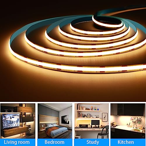Applicazione: Strisce LED COB 12V super luminose, bianco caldo 3000K 320LED / M totale 1600 LED 5 metri camera da letto, sala da pranzo, cucina, retroilluminazione, giardino, illuminazione per feste, risparmio energetico e sicuro da usare.