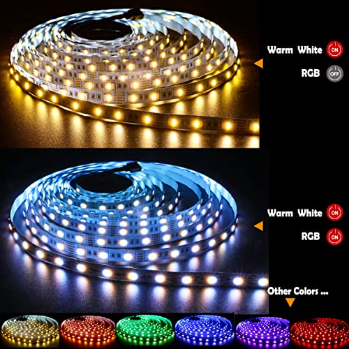 Controllo indipendente: queste strisce LED RGBWW sono divise in due parti, RGB e bianco caldo. La parte RGB e la parte W possono essere attivate/disattivate indipendentemente e possono controllare indipendentemente la luminosità della luce del nastro LED e il suo colore.