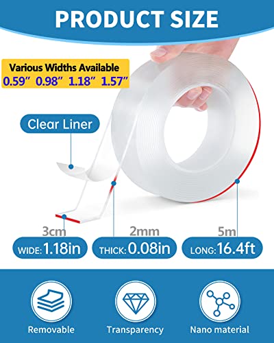 Teskyer Nastro Biadesivo Extra Forte, Nastro Biadesivo Trasparente, Distaccabile, Riuso, Multiuso, 30mm x 5m