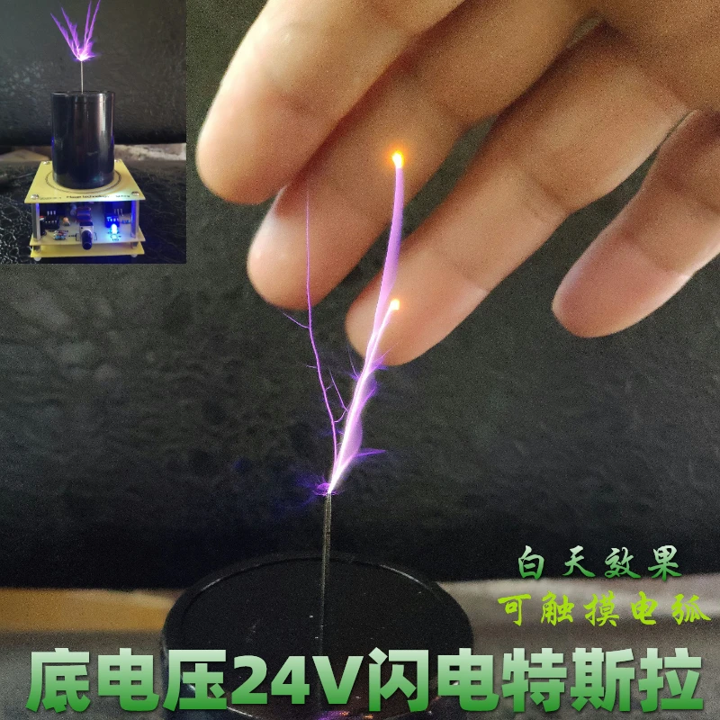 Mini Tesla coils 24V7cm artificially initiated lightning Arc hand touchable generator
