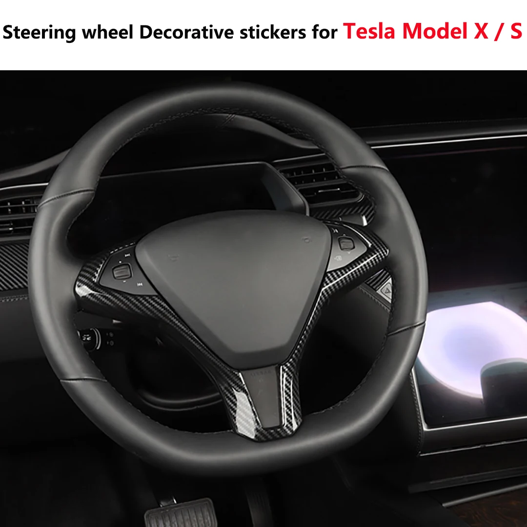 For Tesla Model S Steering wheel Decorative stickers Carbon fiber Plastic Cover for Tesla Model X 2019-2020