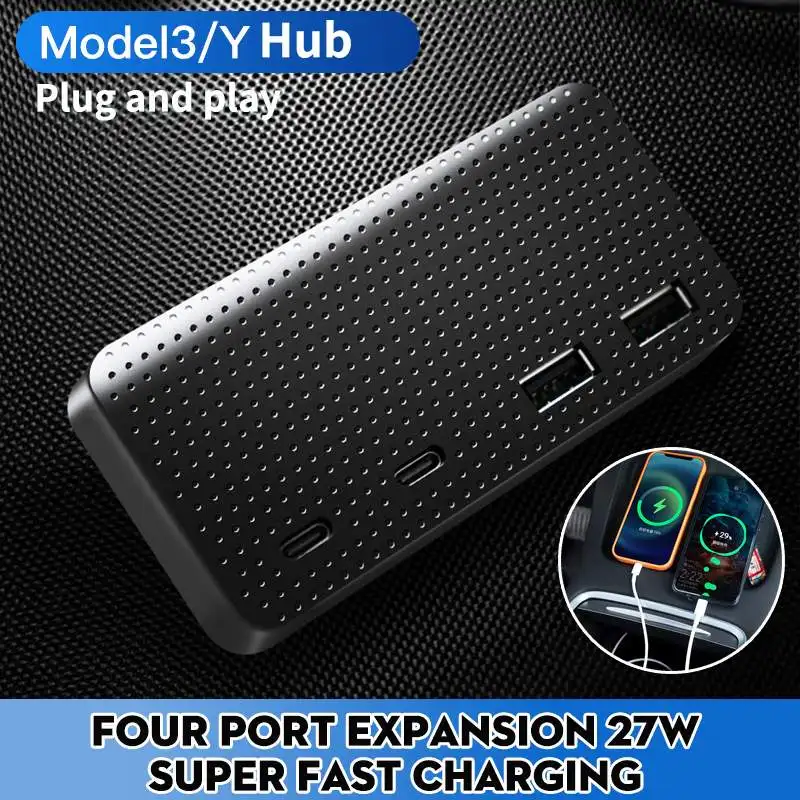 2021 Tesla Model3/Y HUB USB Splitter Hub Docking Station Speed Max Hub Extender Charger Car Central Control Armrest Storage Box