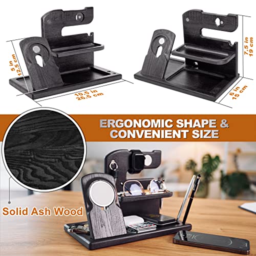 Teslyar Supporto per Smartphone compatibile con caricabatterie magnetico per iPhone, iWatch, in legno Regalo da Uomo Natale Regalo Compleanno regalo per Marito per papà Supporto da comodino (Nero)