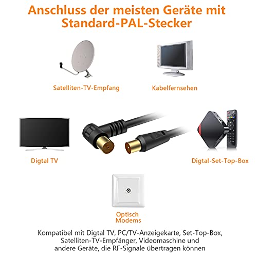 TESmart Cavo TV TV HDTV, 2 m, cavo antenna TV (dritto) a presa TV (angolo di 90 gradi), adatto per HDTV, radio e altro (nero)